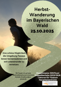 Am 25.10.2025 fand eine besondere Exkursion in den bayerischen Wäldern statt, organisiert für die Teilnehmer*innen der Türkischkurse sowie die Studierenden der Doppelmaster-Programme IKM/KUWI und der Doppelbachelor-Programme KKW/MUK.
