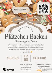 In den Jahren 2023, 2024 und 2025 haben die Teilnehmenden wieder fleißig Teig gerollt, Kekse ausgestochen und kreativ verziert. Während des Backens sprechen wir auch darüber, wie Plätzchen traditionell in der Türkei hergestellt werden und über die Weihnachtsbräuche und -traditionen in der Türkei, wodurch die Veranstaltung auch einen interkulturellen Austausch fördert.