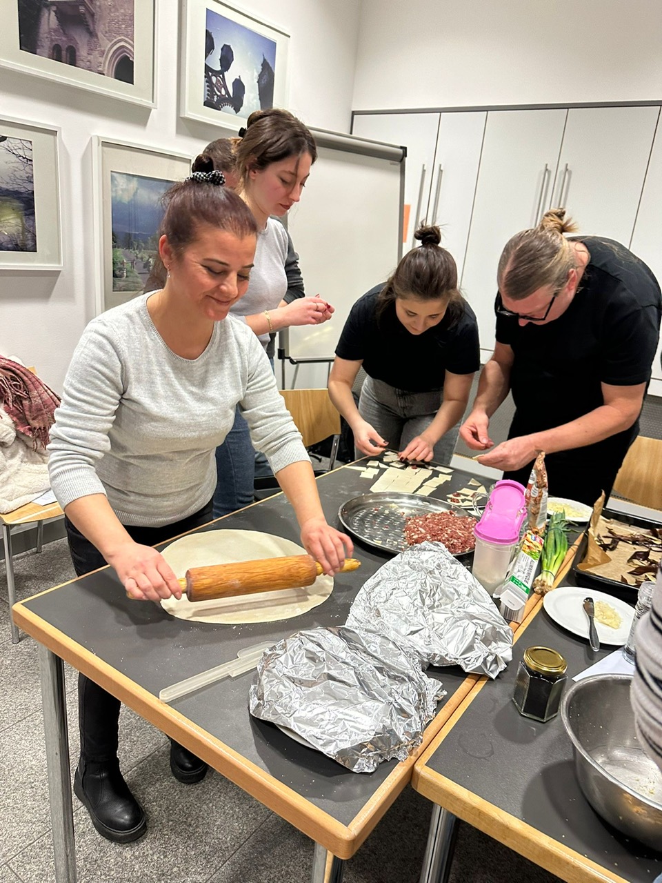 Dabei wurden zentrale Fragen beantwortet, die im hektischen Studienalltag oft zu kurz kommen: • Wie ernähre ich mich ausgewogen? * Worauf sollte ich bereits beim Einkauf und bei der Zubereitung von Lebensmitteln achten? Diese wertvollen Tipps bildeten die perfekte Grundlage für den praktischen Teil des Abends. Gemeinsames Schaffen und kultureller Dialog An den Kochstationen wurde die Theorie direkt in die Praxis umgesetzt. Unter Anleitung wurden klassische Gerichte der Türk Mutfağı zubereitet. Während die Düfte von frischen Kräutern und Gewürzen den Raum erfüllten, bot sich den Teilnehmenden die Gelegenheit, die türkische Kultur hautnah zu erleben.