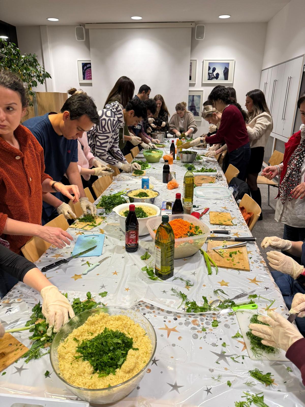 Im weiteren Verlauf der Veranstaltung wurde die türkische Esskultur in einer Präsentation von Dr. Gülin Tunalı behandelt. Dabei wurden die historische Entwicklung der türkischen Küche, ihre kulturelle Bedeutung und ihre Beziehung zum Alltag erläutert. Im Anschluss an diesen theoretischen Rahmen bereitete man gemeinsam mit den Teilnehmern ein Gericht aus der türkischen Küche zu, wodurch die kulinarische Kultur praktisch erlebt werden konnte. Die zubereiteten Speisen und Süßigkeiten wurden zusammen bei Tee und Kaffee geteilt.